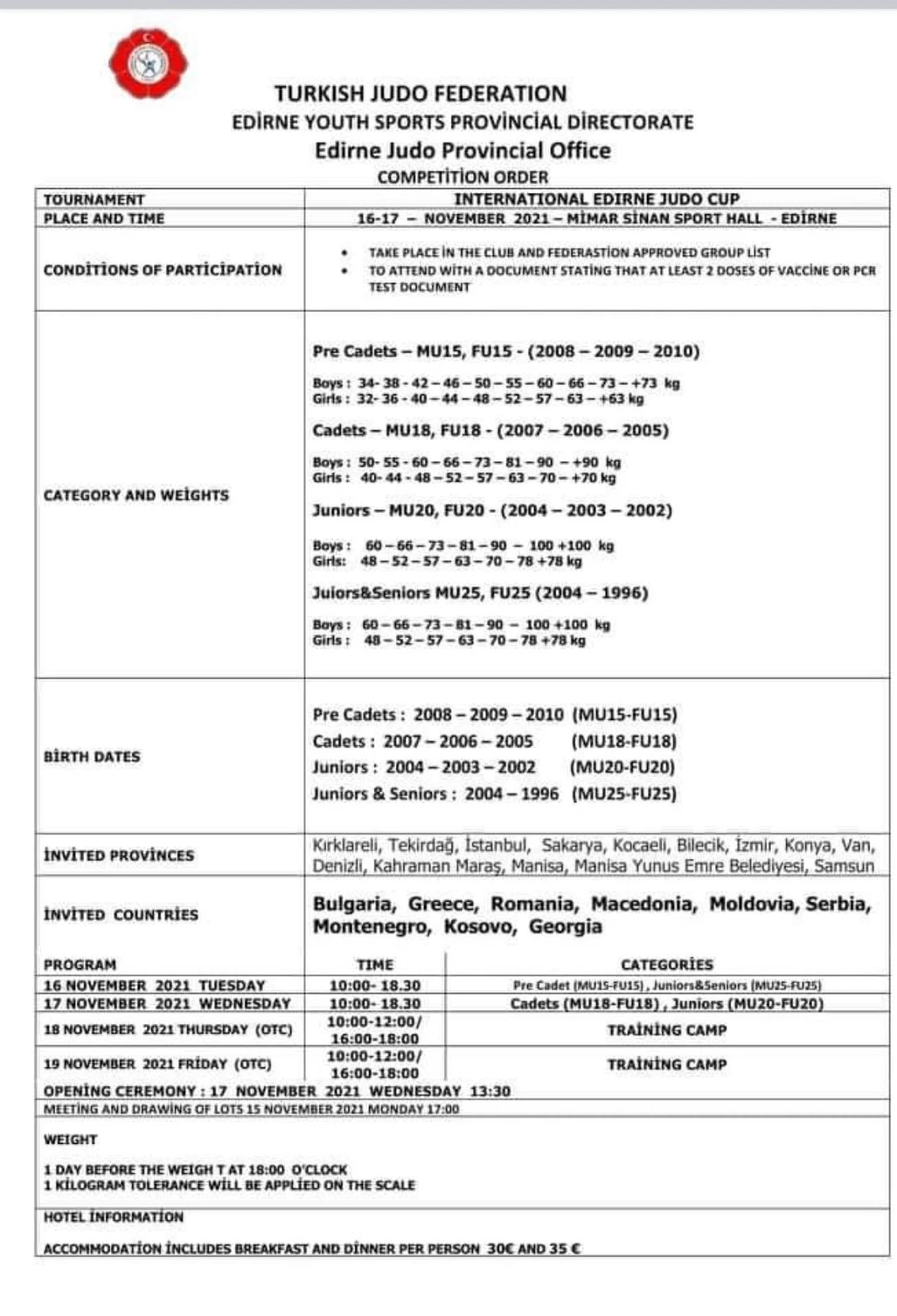 На 16 – 17 ноември ще се проведе международен турнир в Одрин, Турция